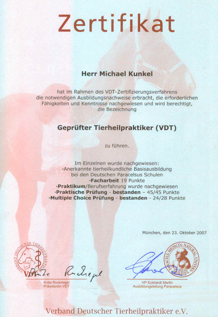 Michael Kunkel, geprüfter Tierheilpraktiker(VDT) und Mitglied